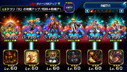 火・氷・雷・水・風・土・光・闇の属性が設定されていて、バトル中パーティに設定された属性で攻撃すると、与えるダメージ量がアップします。